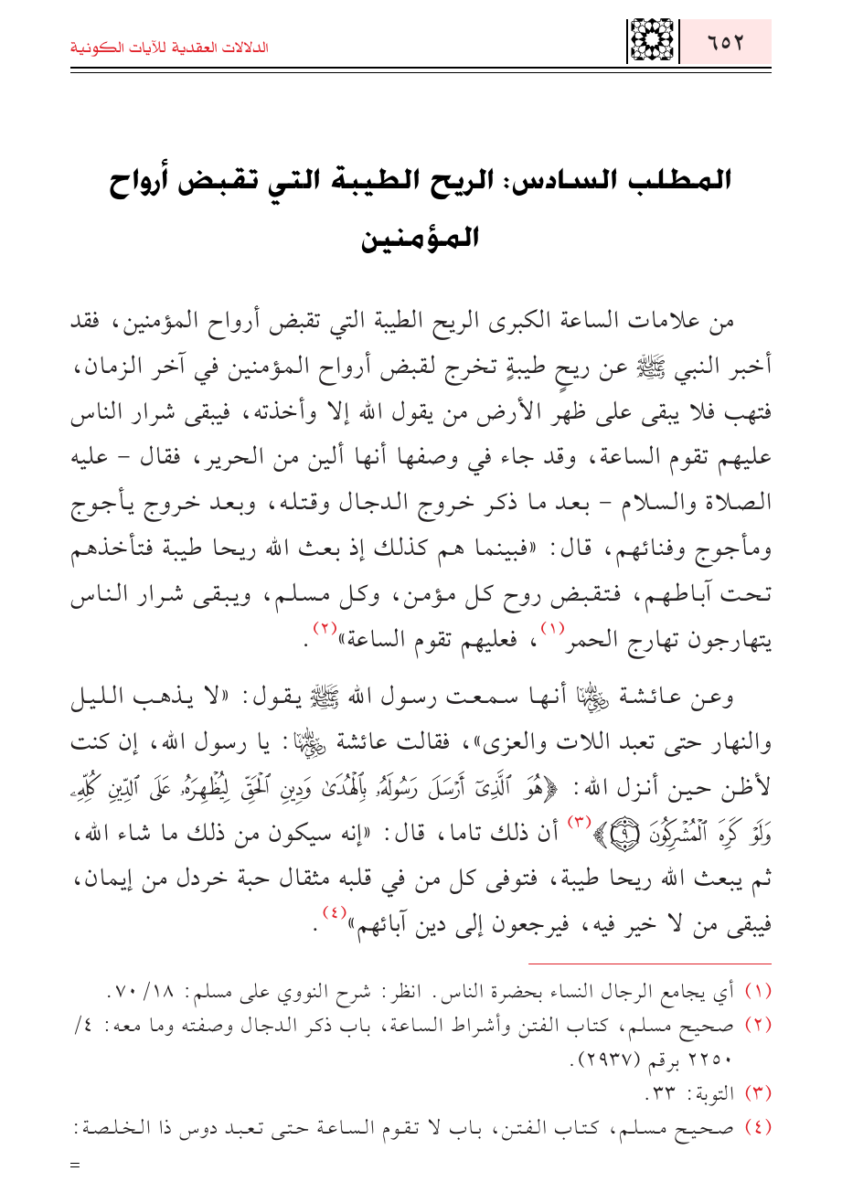 المطلب السادس: الريح الطيبة التي تقبض أرواح المؤمنين