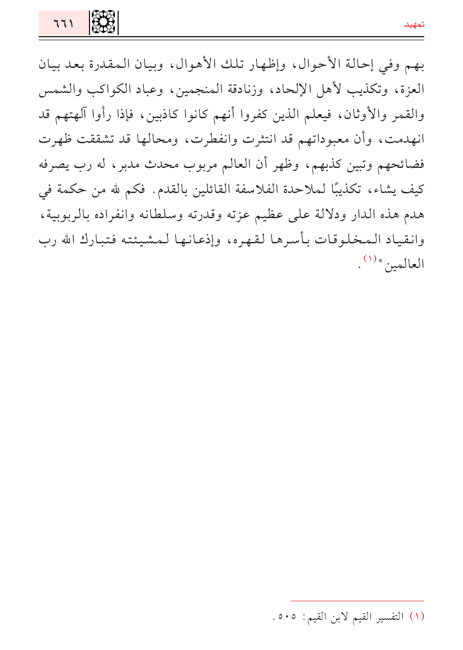 (¬١) التفسير القيم لابن القيم: ٥٠٥.