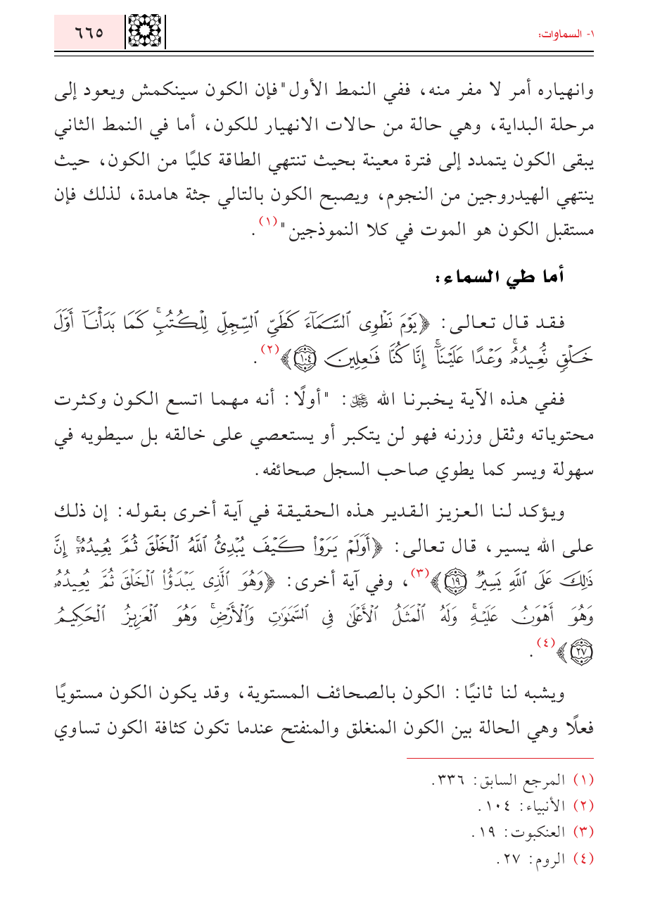 (¬٢) الأنبياء: ١٠٤.