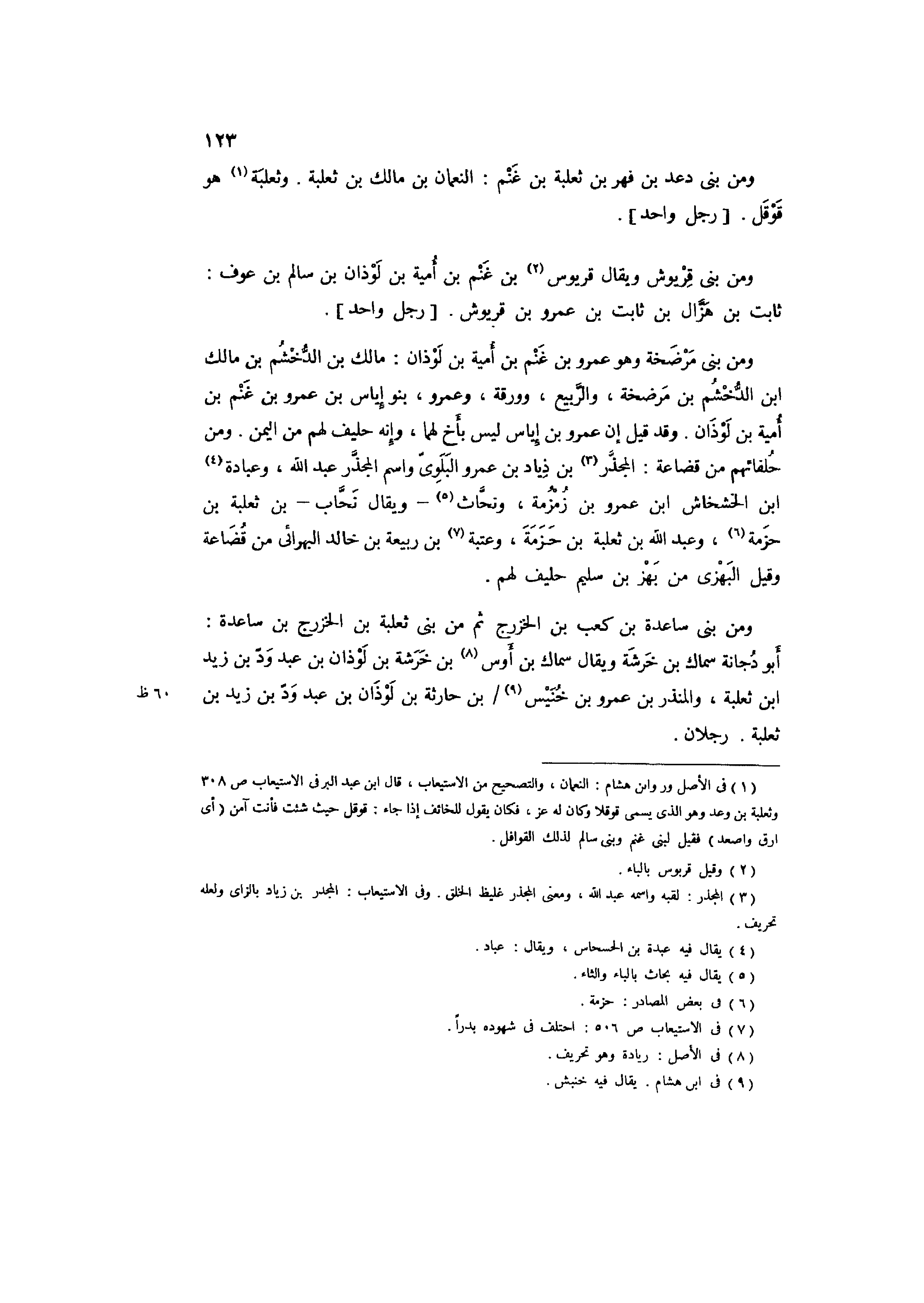 1 فِي الأَصْل ور وَابْن هِشَام: النُّعْمَان، والتصحيح من الِاسْتِيعَاب، قَالَ ابْن عبد الْبر فِي الِاسْتِيعَاب ص308 وثعلبة بن وعد وَهُوَ الَّذِي يُسمى قوقلا وَكَانَ لَهُ عز، فَكَانَ يَقُول للخائفين: إِذا جَاءَ قوقل حَيْثُ شِئْت فَأَنت آمن "أَي ارق واصعد" فَقيل لبنى غنم وَبنى سَالم لذَلِك القواقل.