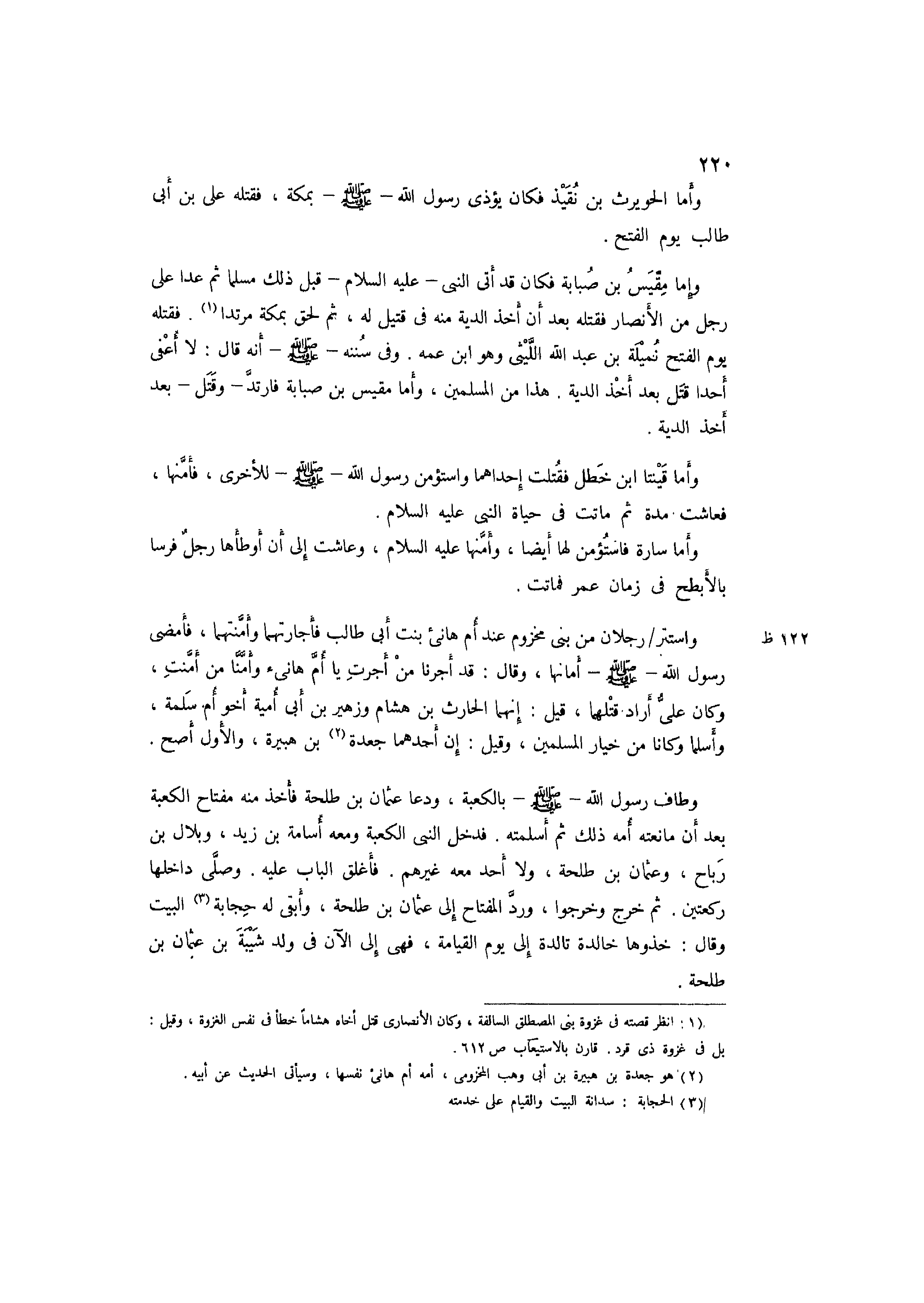 1 انْظُر قصَّته فِي غَزْوَة بني المصطلق السالفة، وَكَانَ الْأنْصَارِيّ قتل أَخَاهُ هشاما خطأ فِي نفس الْغَزْوَة، وَقيل: بل فِي غَزْوَة ذِي قرد. قَارن بالاستيعاب ص612.