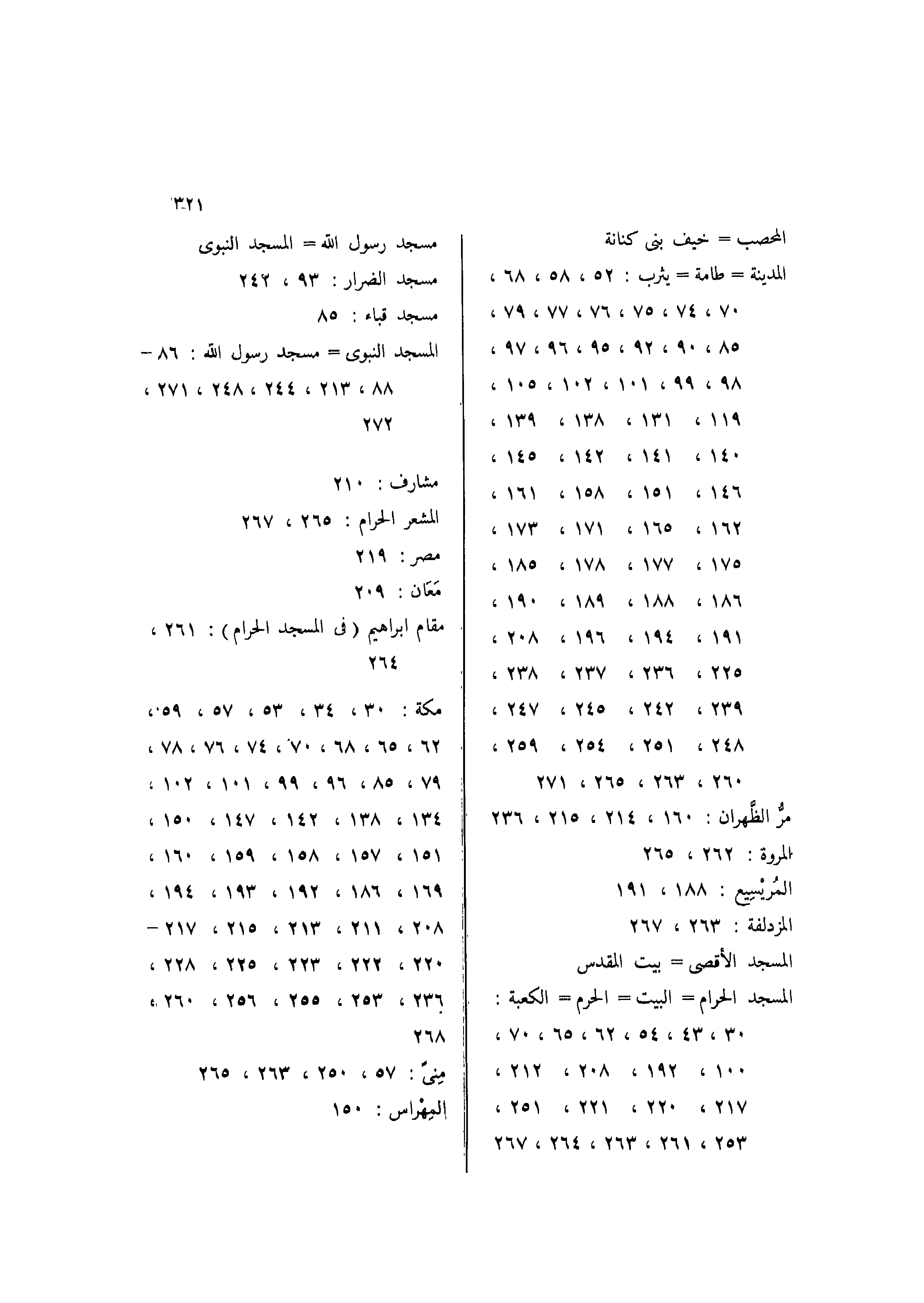 الْمَدِينَة= طابة= يثرب: 52-58-68-70-74-75-76-77-79-85-90-92-95-96-97-98-99-101-102-105-119-131-138-139-140-141-142-145-146-151-158-161-162-165-171-173-175-177-178-185-186-188-189-190-191-194-196-208-225-236-237-238-239-242-245-247-248-251-254-259-260-263-265-271.