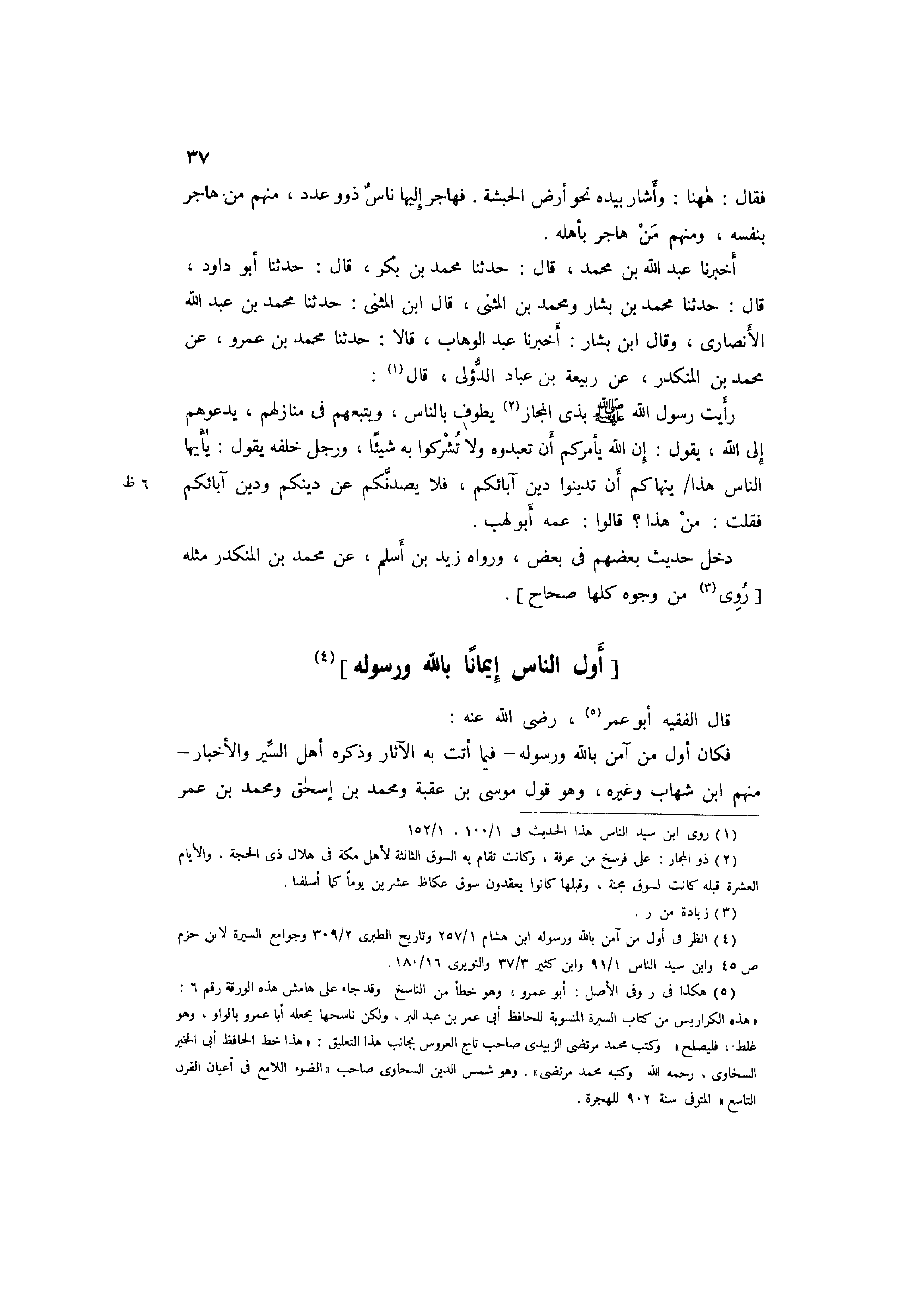 فَقَالَ: هَا هُنَا، وَأَشَارَ بِيَدِهِ نَحْوَ أَرْضِ الْحَبَشَةِ. فَهَاجَرَ إِلَيْهَا نَاس ذَوُو عدد، مِنْهُمْ مَنْ هَاجَرَ بِنَفْسِهِ، وَمِنْهُمْ مَنْ هَاجَرَ بِأَهْلِهِ.