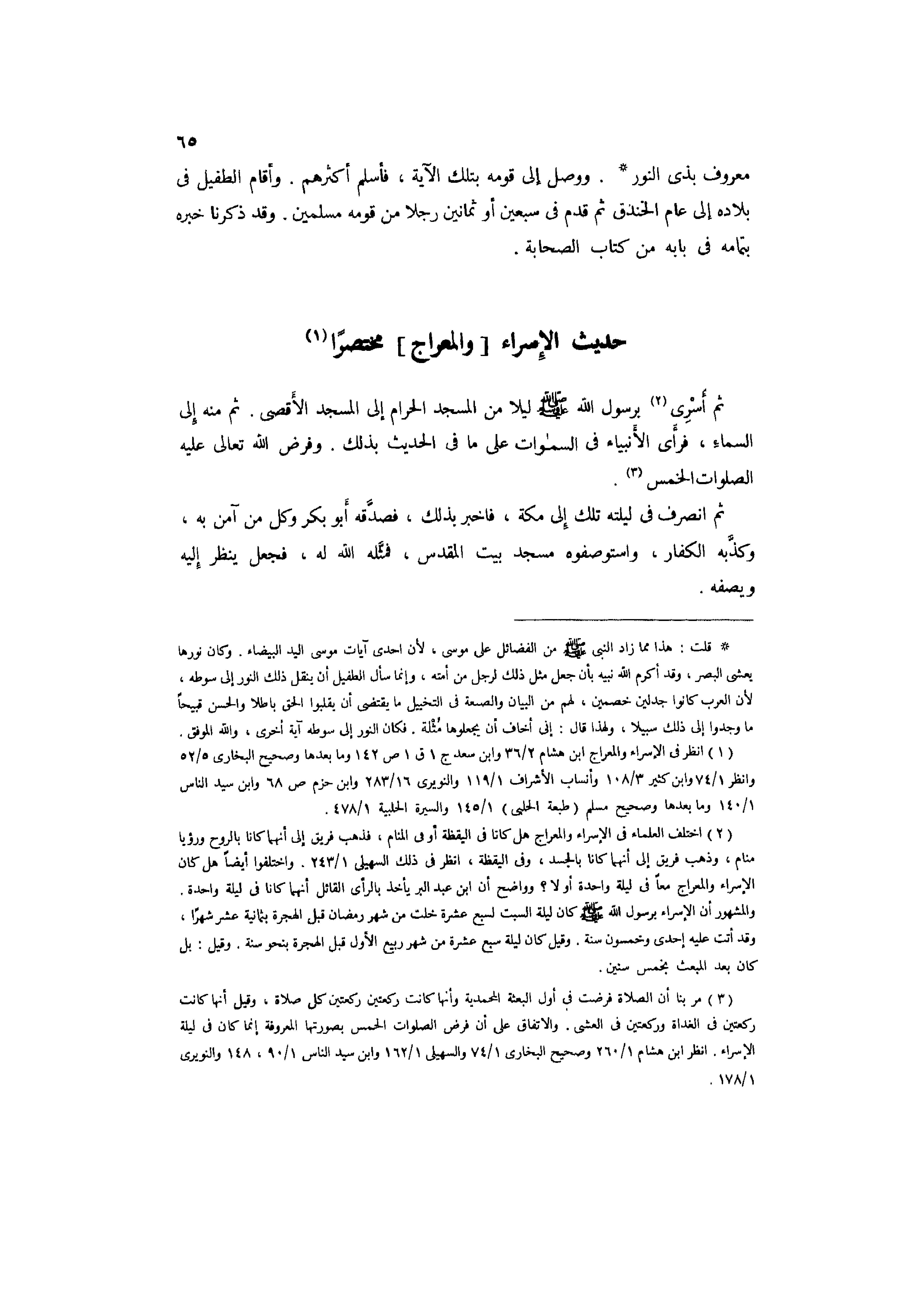 1 انْظُر فِي الْإِسْرَاء والمعراج ابْن هِشَام 2/ 36 وَابْن سعد ج1 ق1 ص142 وَمَا بعْدهَا وصحيح البُخَارِيّ 5/ 52 وَانْظُر 1/ 74 وَابْن كثير 3/ 108 وأنساب الْأَشْرَاف 1/ 119 والنويري 16/ 283 وَابْن حزم ص 68 وَابْن سيد النَّاس 1/ 140 وَمَا بعْدهَا وصحيح مُسلم "طبعة الْحلَبِي" 1/ 145 والسيرة الحلبية 1/ 478.