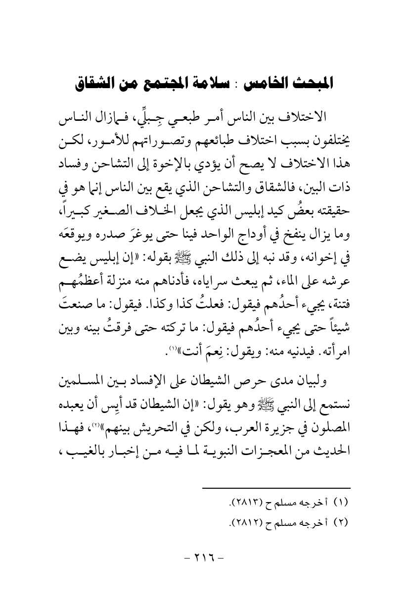 المبحث الخامس: سلامة المجتمع من الشقاق