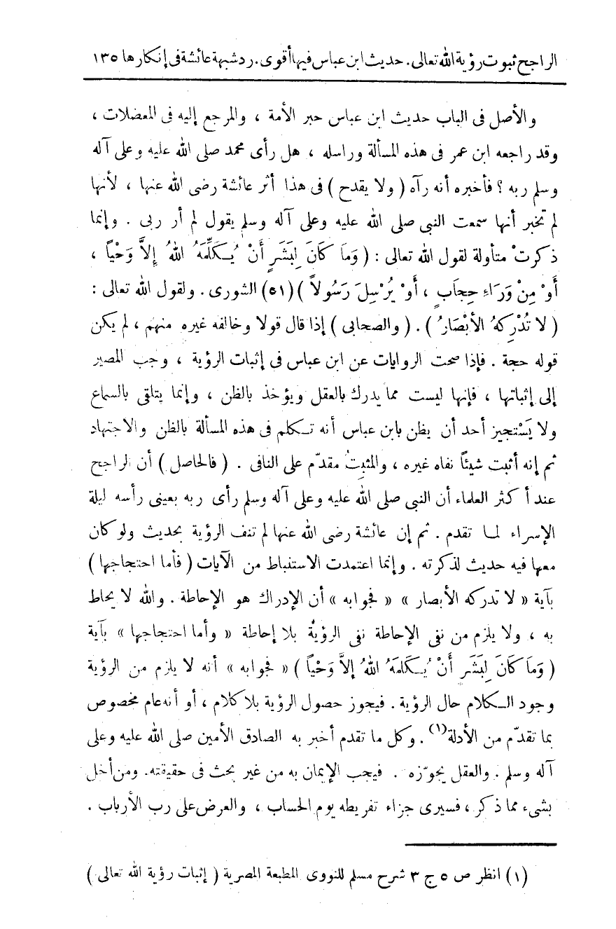 (¬1) انظر ص 5 ج 3 شرح مسلم للنووي المطبعة المصرية (إثبات رؤية الله تعالى).