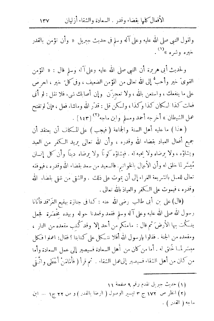 (¬2) انظر ص 172 ج 3 تيسير الوصول (الرضا بالقدر) وص 22 ج 1 - ابن ماجه (القدر).
