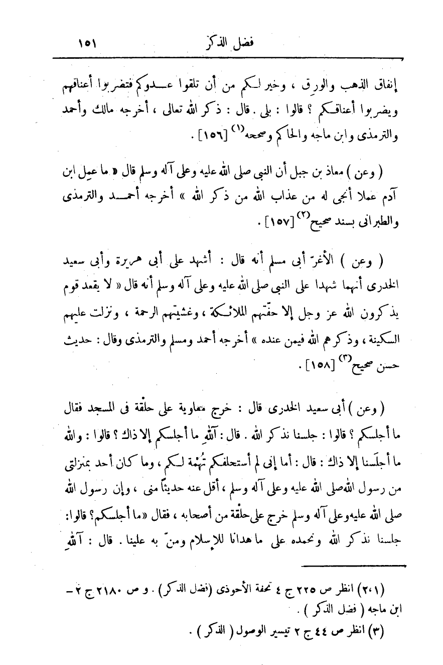 (¬1) انظر ص 225 ج 4 تحفة الأحوذى (فضل الذكر). وص 2180 ج 2 - ابن ماجه (فضل الذكر).