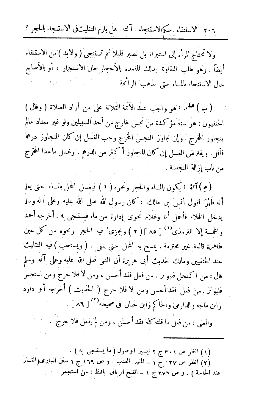 (¬2) انظر ص 127 ج 1 - المنهل العذب. وص 169 ج 1 سنن الدارمي (التستر عند الحاجة). وص 276 ج 1 - الفتح الرباني بلفظ: من استجمر.