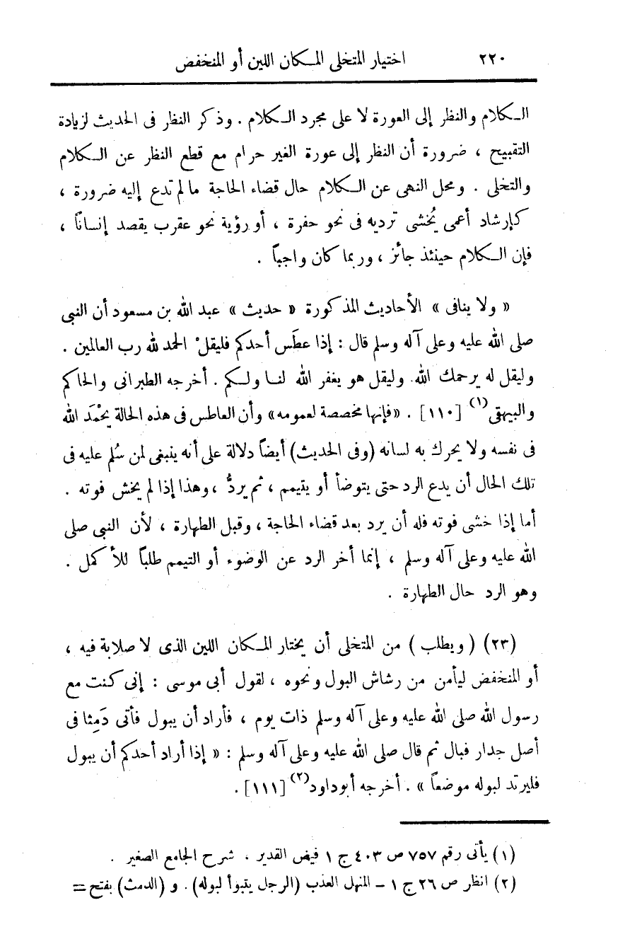 (¬2) انظر ص 26 ج 1 - المنهل العذب (الجرل يتبوأ لبوله). و (الدمث) يفتح فكسر أو سكون، الأرض السهلة. و (فليرتد) من الارتياد وهو الاختبار، أي فليختر مكانا سهلا لينا أو متخفضا.