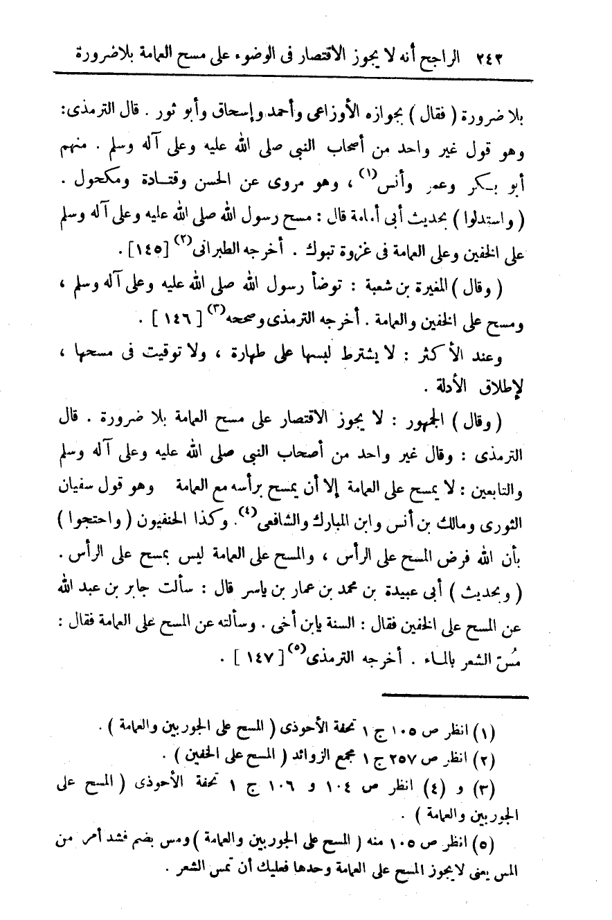 (¬4) (انظر ص 104 و 106 ج تحفة الأحوذي المسح على الجوربين والعمامة).