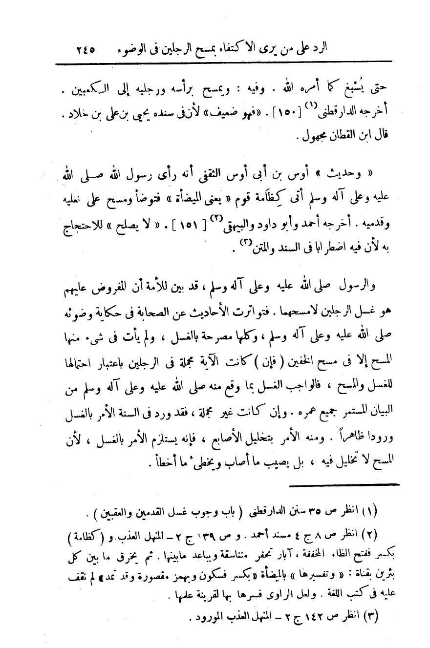 (¬1) انظر ص 35 سنن الدارقطني (باب وجوب غسل القدمين والعقبين).