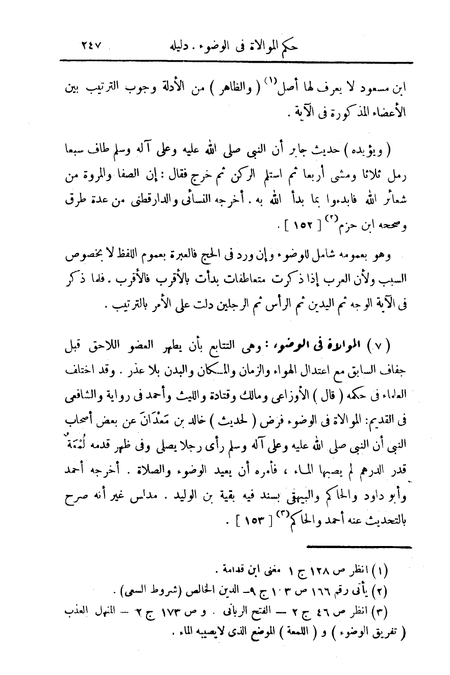 (¬3) انظر ص 46 ج 2 - الفتح الرباني. وص 173 ج 2 - المنهل العذب (تفريق الوضوء) و (اللمعة) الموضع الذي لا يصيبه الماء.