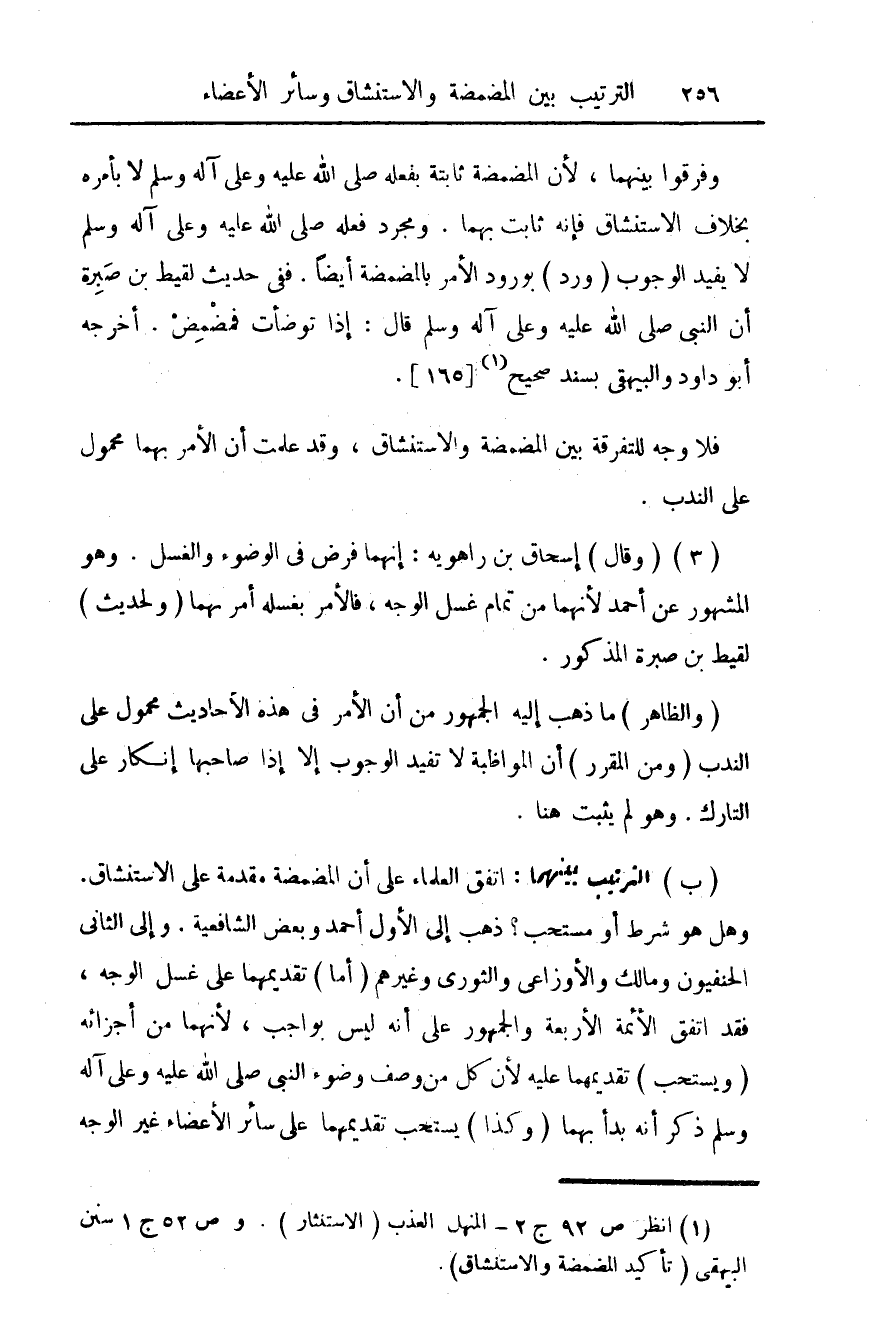 (¬1) انظر ص 92 ج 2 - المنهل العذب (الاستنثار). وص 52 ج 1 سنن البيهقي (تأكيد المضمضة والاستنشاق).