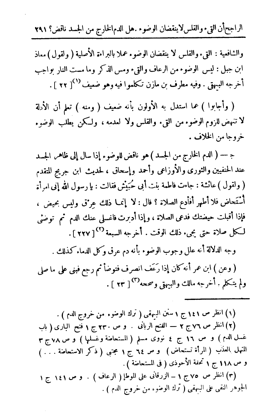 (¬3) انظر ص 75 ج 1 - الزرقاني على الموطأ (الرعاف). ص 141 ج 1 الجوهر النقي على البيهقي (ترك الوضوء من خروج الدم).