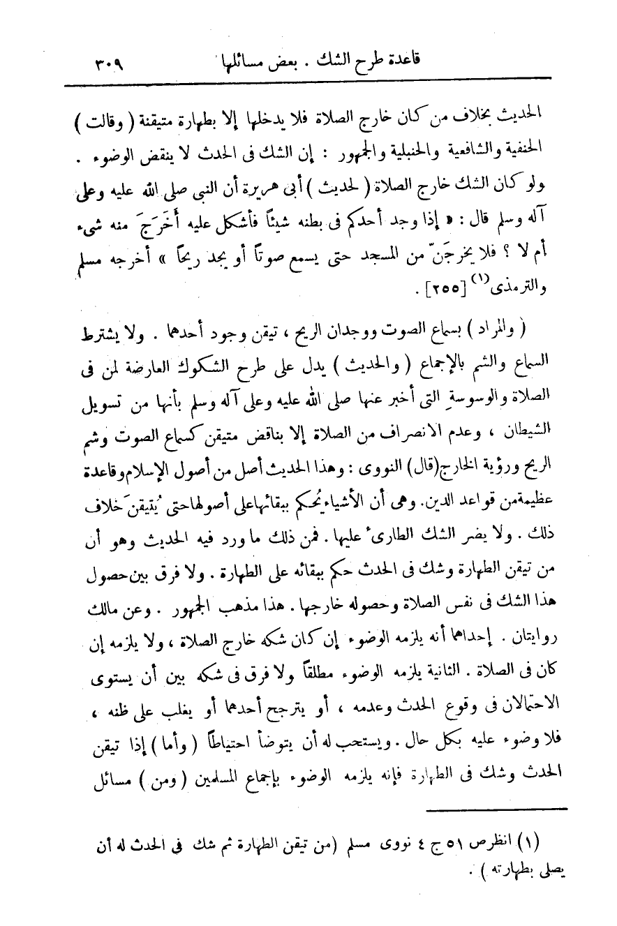 (¬1) انظر ص 151 ج 4 نووى مسلم (من تيقن الطهارة ثم شك فى الحدث له أن يصلى بطهارته).