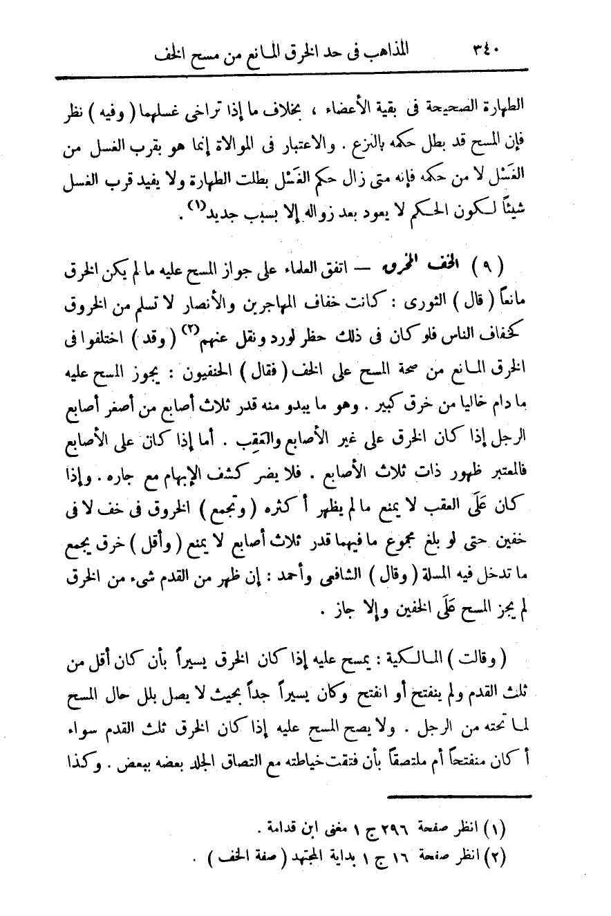 (¬2) انظر صفحة 16 ج 1 بداية المجتهد (صفة الخف).