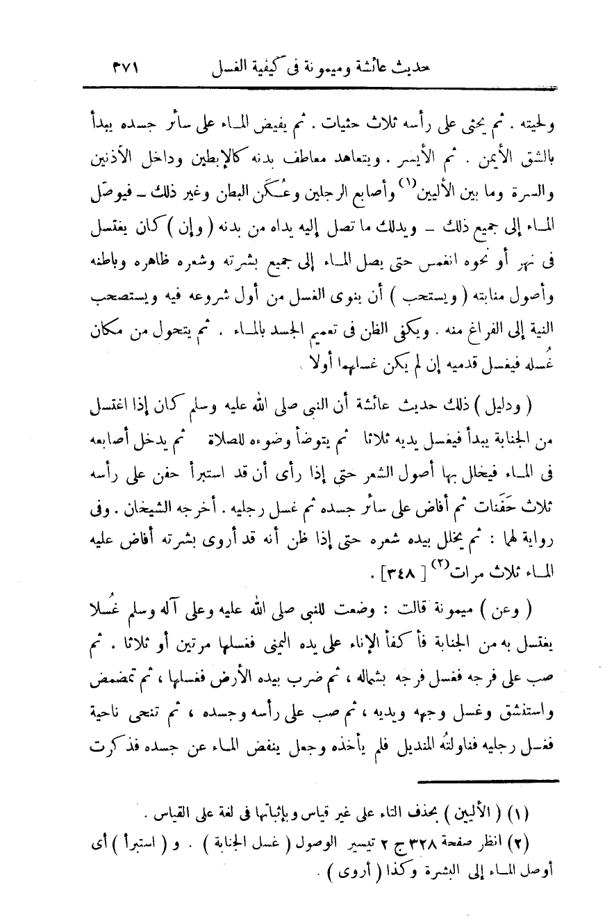 (¬2) انظر صفحة 328 ج 2 تيسير الوصول (غسل الجنابة). و (استبرأ) أي أوصل الماء إلى البشرة وكذا (أروى).
