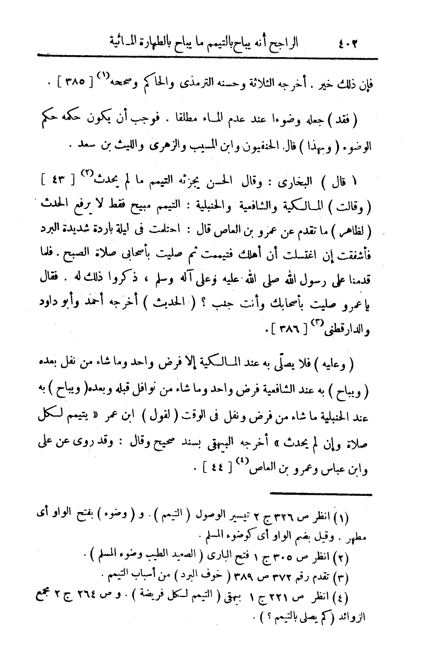 (¬4) انظر ص 221 ج 1 بيهقي (التيمم لكل فريضة). وص 264 ج 2 مجمع الزوائد (كم يصلي بالتيمم؟ ).