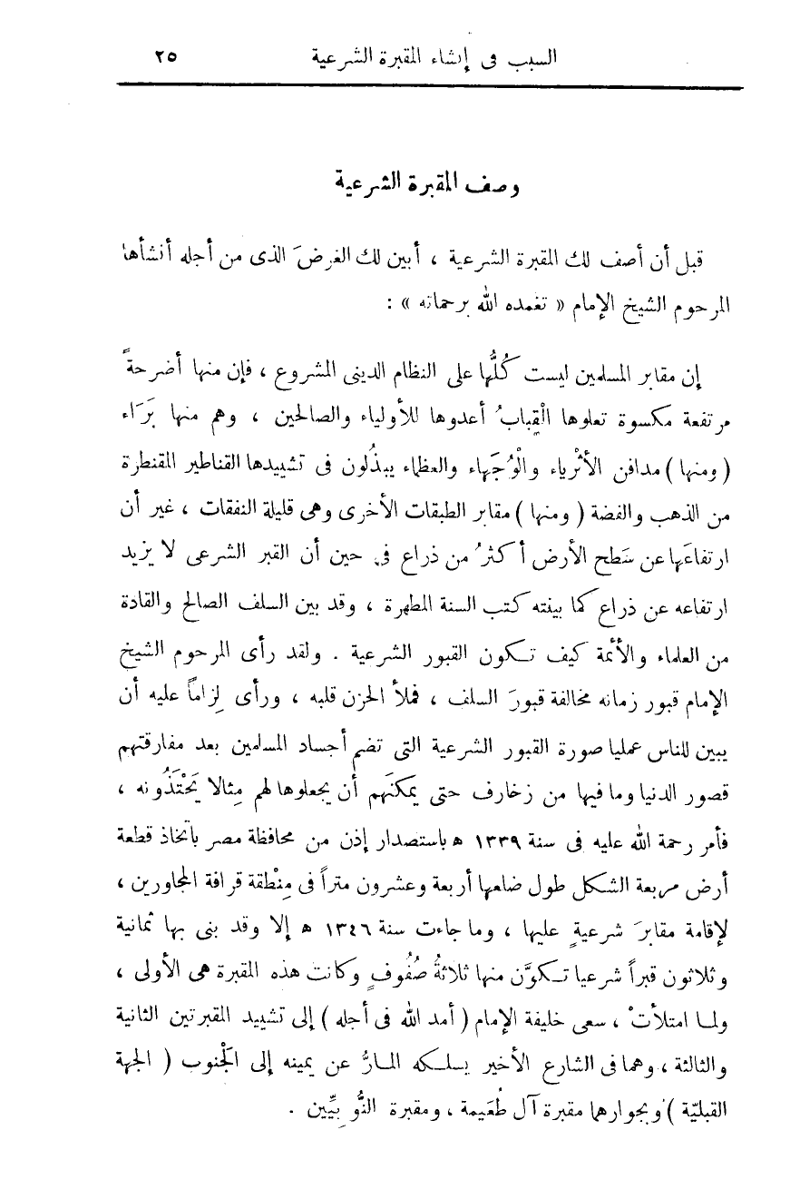 قبل أن أصف لك المقبرة الشرعية، أبين لك الغرض الذى من أجله أنشأها المرحوم الشيخ الإمام " تغمده الله برحماته ".