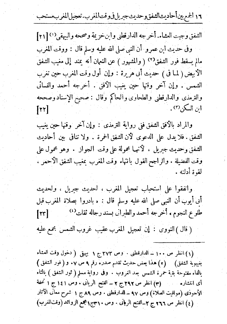 (¬3) انظر ص 292 ج 2 - الفتح الربانى. وص 141 ج 1 تحفة الأحوذى (مواقيت الصلاة) وص 97 - الدار قطنى. وص 89 ج 1 شرح معانى الآثار.