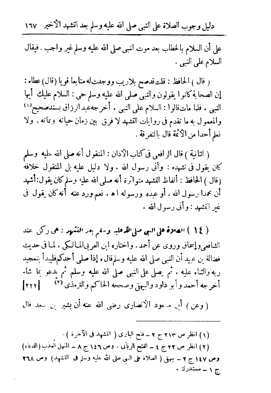 (¬2) ص 22 ج 4 - الفتح الربانى. وص 146 ج 8 - المنهل العذب (الدعاء). وص 147 ج 2 - بيهقى (الصلاة على النبى صلى الله عليه وسلم فى التشهد) وص 268 ج 1 - مستدرك.