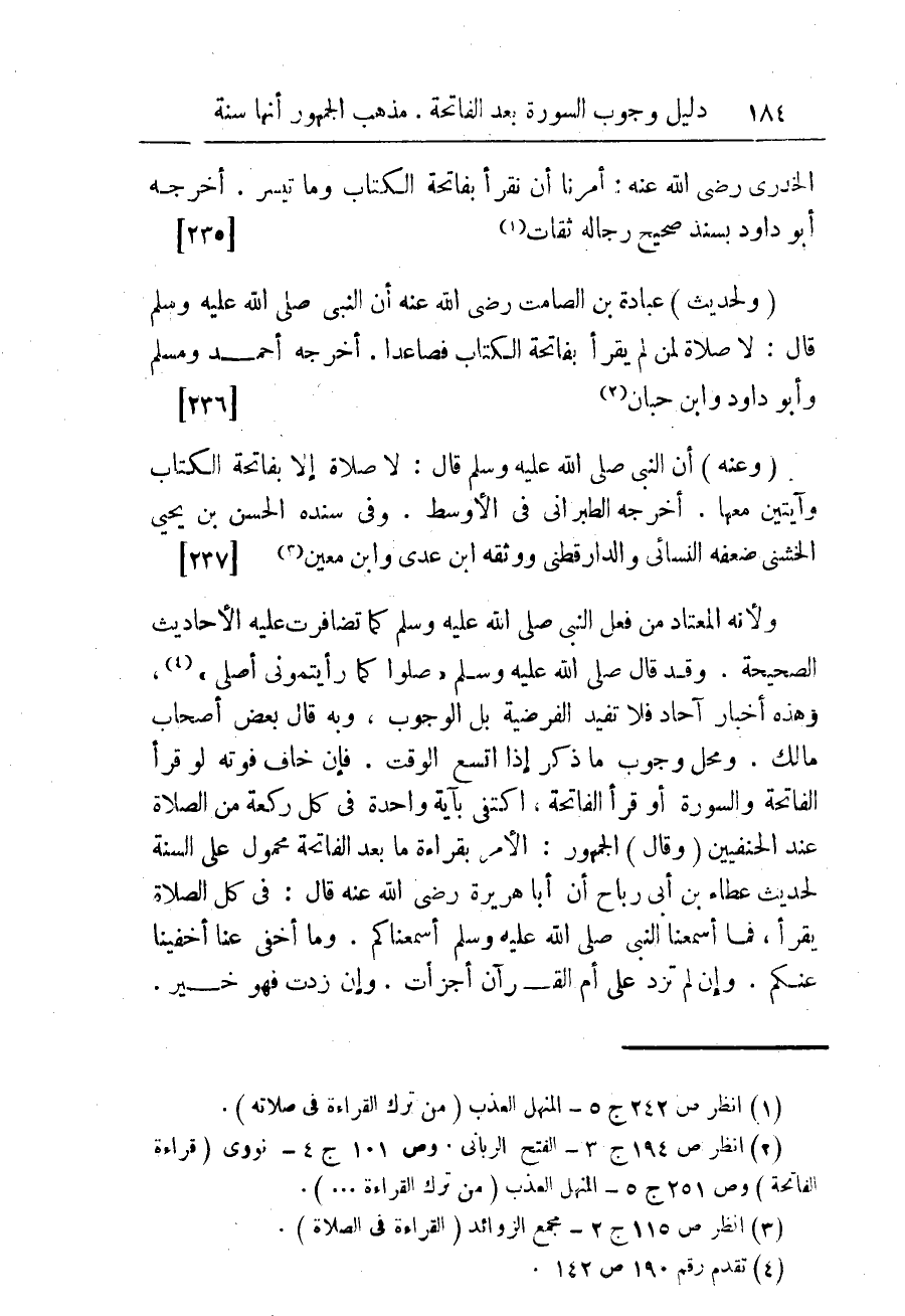 (¬2) 194 ج 3 - الفتح الربانى. وص 101 ج 4 - نووى (قراءة الفاتحة) وص 251 ج 5 - المنهل العذب (من ترك القراءة .. ).