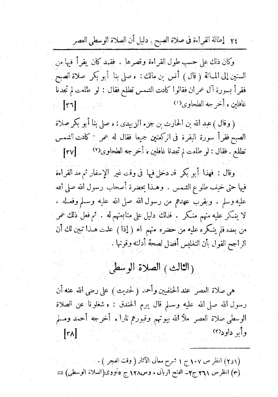(¬3) ص 261 ج 2 الفتح الربانى. وص 128 ج 5 نووى (الصلاة الوسطى) = وص 322 ج 3 - المنهل العذب. ولفظه: حبسونا. وغزوة الخندق كانت فى شوال سنة أربع من الهجرة. انظر بيانها بهامش ص 12 ج 7 الدين الخالص.