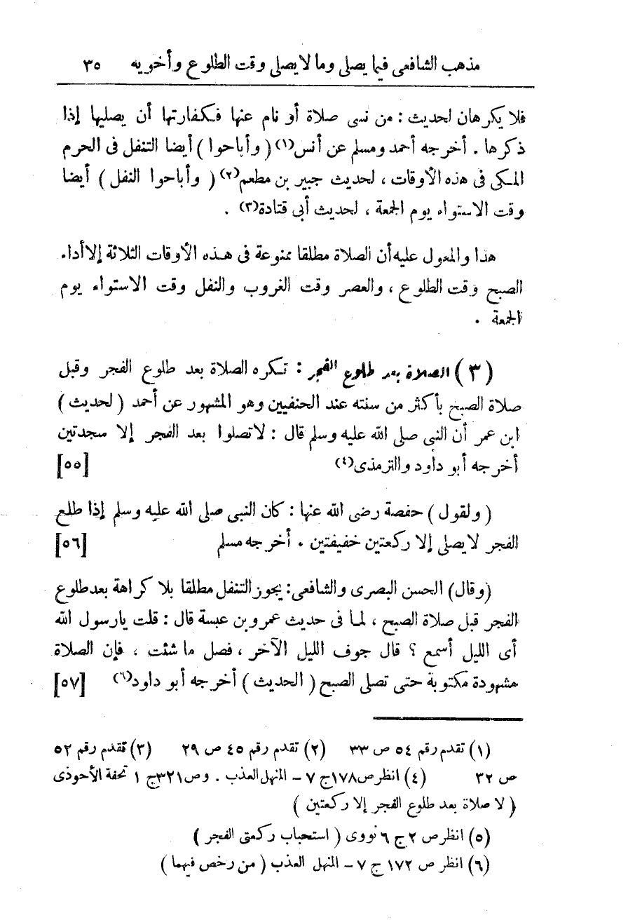(3) الصلاة بعد طلوع الفجر: تكره الصلاة بعد طلوع الفجر وقبل صلاة الصبح بأكثر من سنته عند الحنفيين وهو المشهور عن أحمد (لحديث) ابن عمر أن النبى صلى الله عليه وسلم قال: لا تُصلوا بعد الفجر إلا سجدتين أخرجه أبو داود والترمذى (¬4) {55}