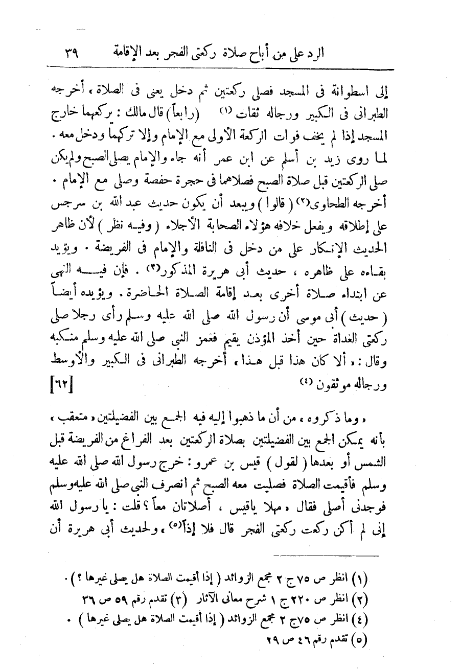 (¬1) انظر ص 75 ج 2 مجمع الزوائد (إذا أقيمت الصلاة هل يصلى غيرها؟ ).
