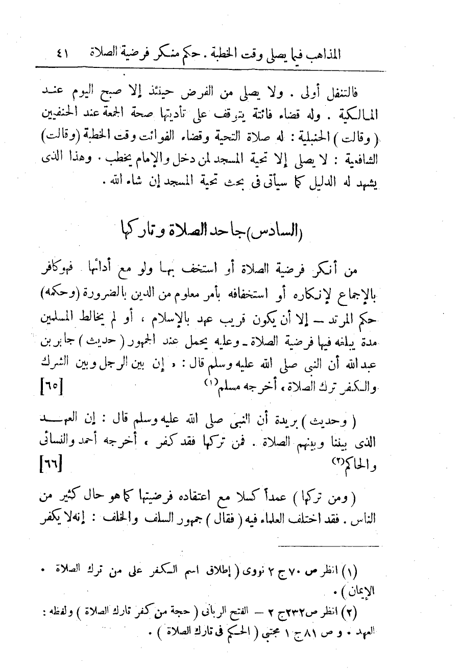 (¬1) انظر ص 70 ج 2 نووى (إطلاق اسم الكفر على من ترك الصلاة الإيمان).