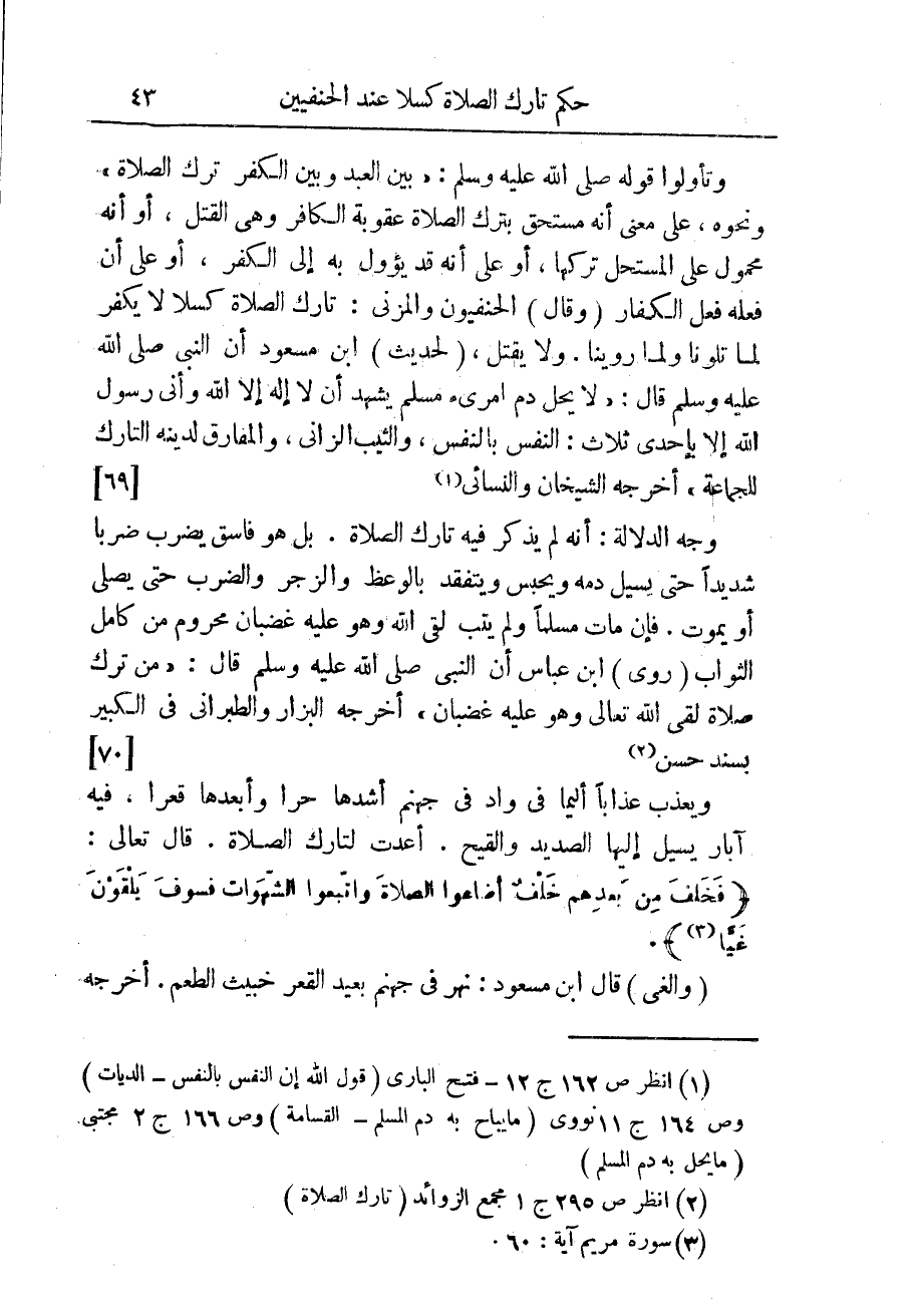 (¬2) انظر ص 295 ج 1 مجمع الزوائد (تارك الصلاة).