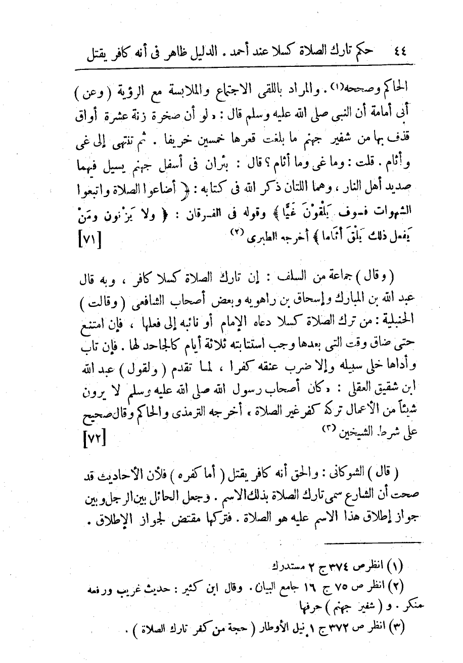 (¬3) انظر ص 372 ج 1 نيل الأوطار (حجة من كفر تارك الصلاة).