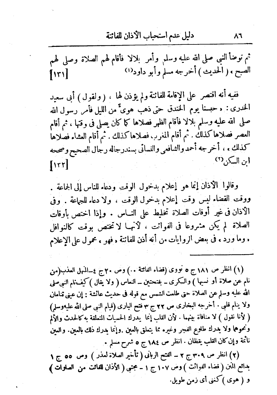 (¬2) انظر ص 309 ج 2 - الفتح الربانى (تأخير الصلاة لعذر) وص 55 ج 1 بدائع المنن (قضاء الفوائت) وص 107 ج 1 - مجتبى (الأذان للفائت من الصلوات) و (هوى) كغنى أى زمن طويل.