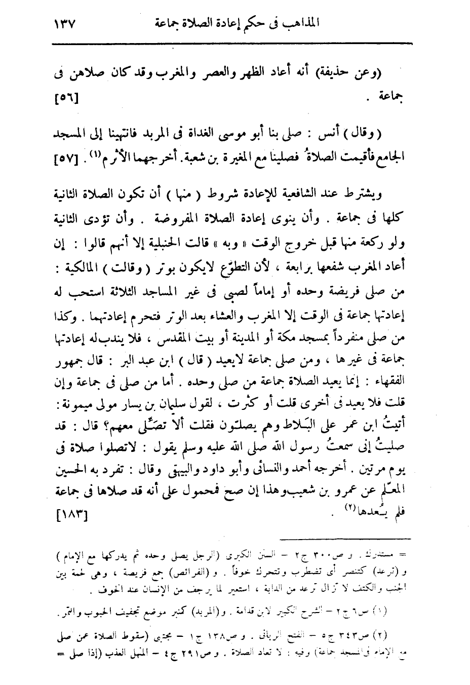 (¬2) ص 343 ج 5 - الفتح الربانى. وص 138 ج 1 - مجتبى (سقوط الصلاة عمن صلى مع الإمام فى المسجد جماعة) وفيه: لا تعاد الصلاة. وص 291 ج 4 - المنهل العذب (إذا صلى = فى جماعة ثم أدرك جماعة أيعيد؟ ) وص 32 ج 2 - السنن الكبرى (من لم ير إعادتها إذا كان قد صلاها فى جماعة) وفيه لا صلاة مكتوبة (والبلاط) موضع مفروش بالبلاط بين المسجد وسوق المدينة.
