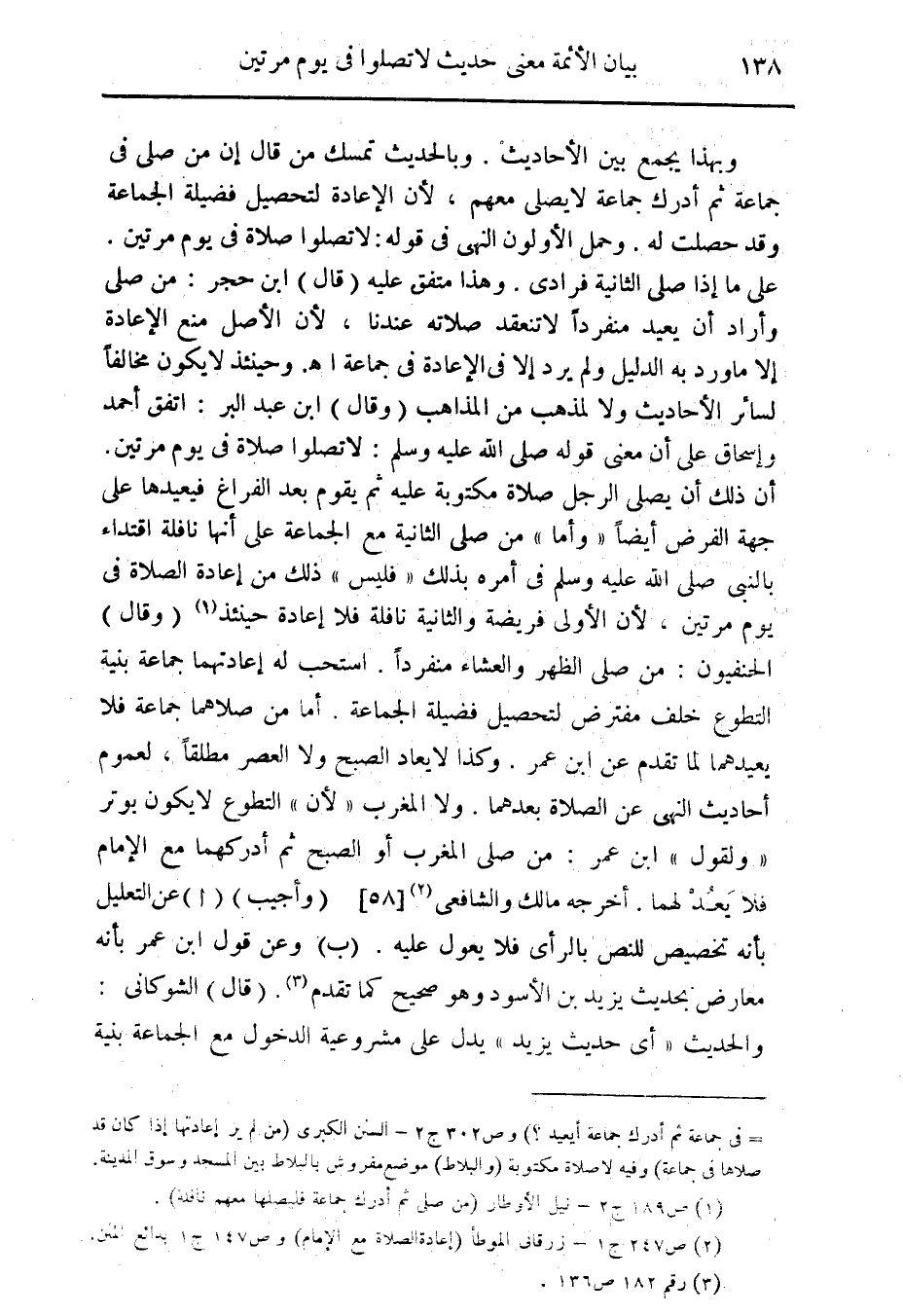 (¬2) ص 247 ج 1 - زرقانى الموطأ (إعادة الصلاة مع الإمام) وص 147 ج 1 - بدائع المنن.