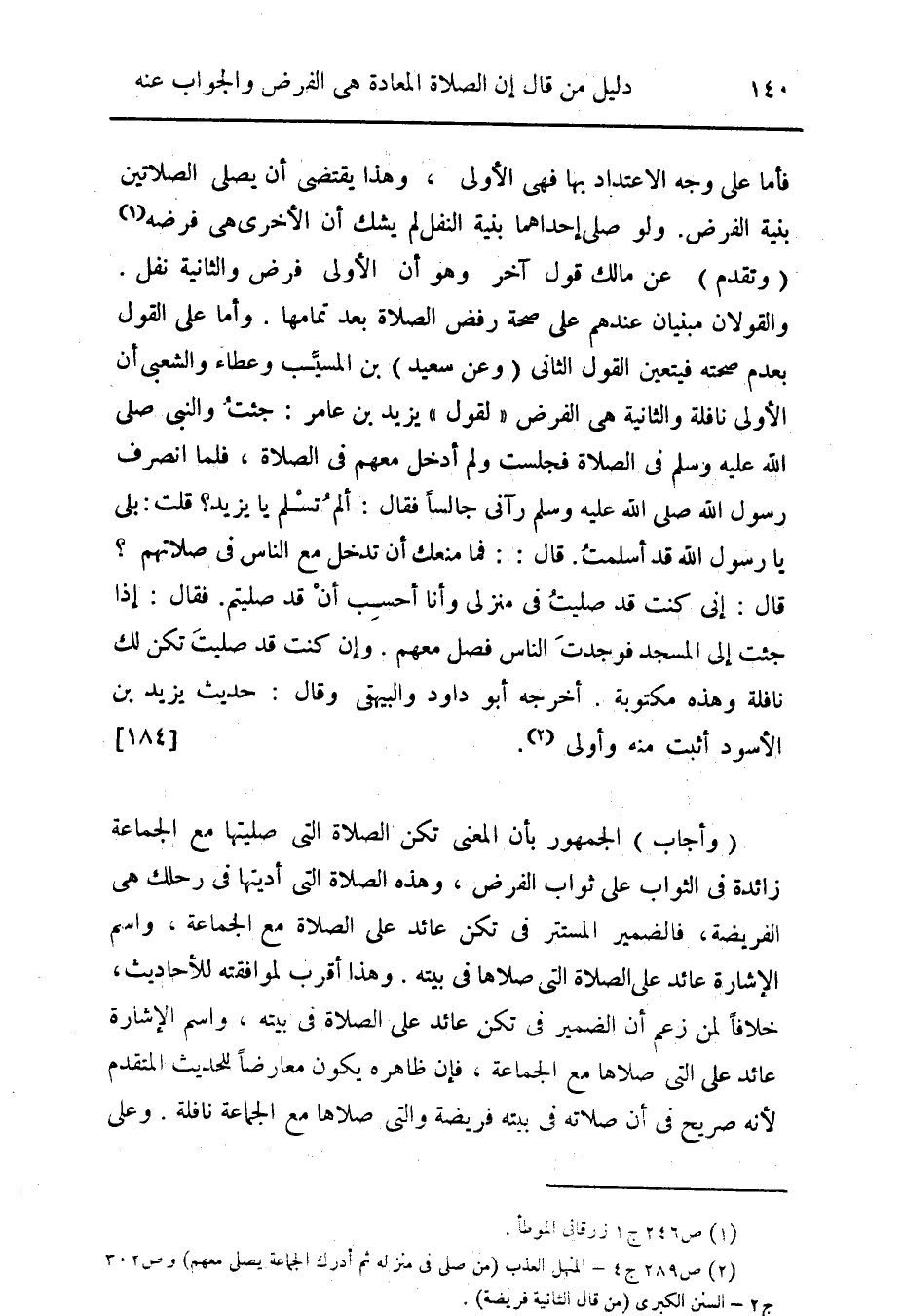 (¬2) ص 289 ج 4 - المنهل العذب (من صلى فى منزله ثم أدرك الجماعة يصلى معهم) وص 302 ج 2 - السنن الكبرى (من قال الثانية فريضة).