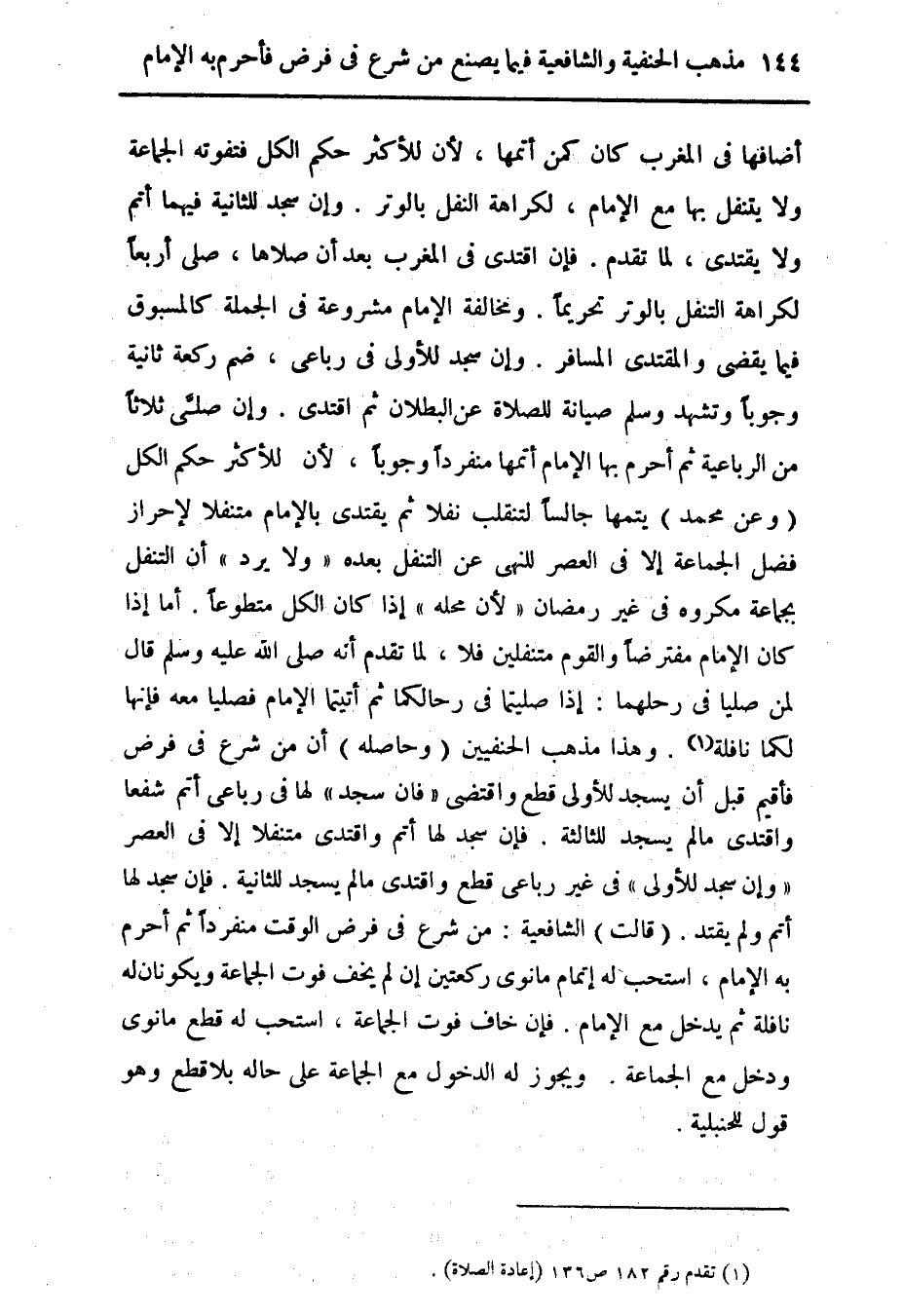 (¬1) تقدم رقم 182 ص 136 (إعادة الصلاة).