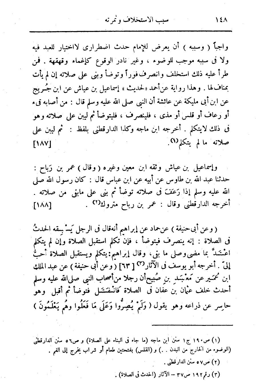 (¬1) ص 190 ج 1 سنن ابن ماجه (ما جاء فى البناء على الصلاة) و 56 سنن الدار قطنى (الوضوء من الخارج من البدن ... ) و (القلس) بفتحتين طعان أو شراب يخرج إلى الفم.