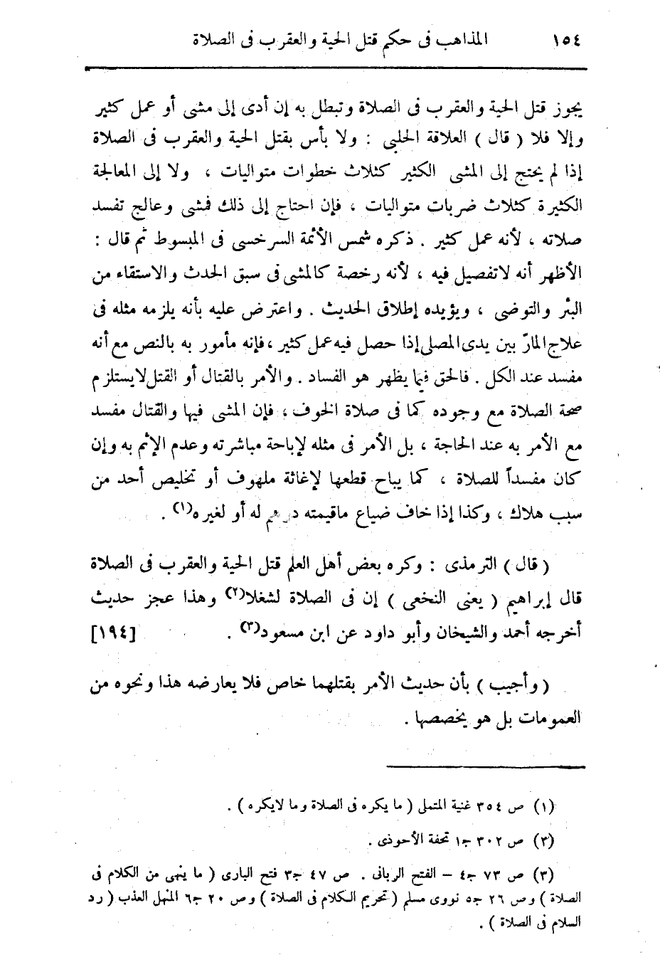 (قال) الترمذى: وكره بعض أهل العلم قتل الحية والعقرب فى الصلاة قال إبراهيم (يعنى النخعى) إن فى الصلاة لشغلا (¬2) وهذا عجز حديث أخرجه أحمد والشيخان وأبو داود عن ابن مسعود (¬3). {194}