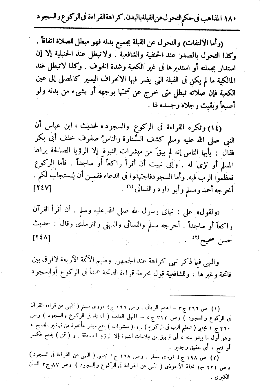 (¬2) ص 198 ج 4 نووى مسلم. وص 168 ج 1 مجتبى (النهى عن القراءة فى السجود). وص 224 ج 1 تحفة الأحوذى (النهى عن القراءة فى الركوع والسجود) وص 87 ج 2 السنن الكبرى.