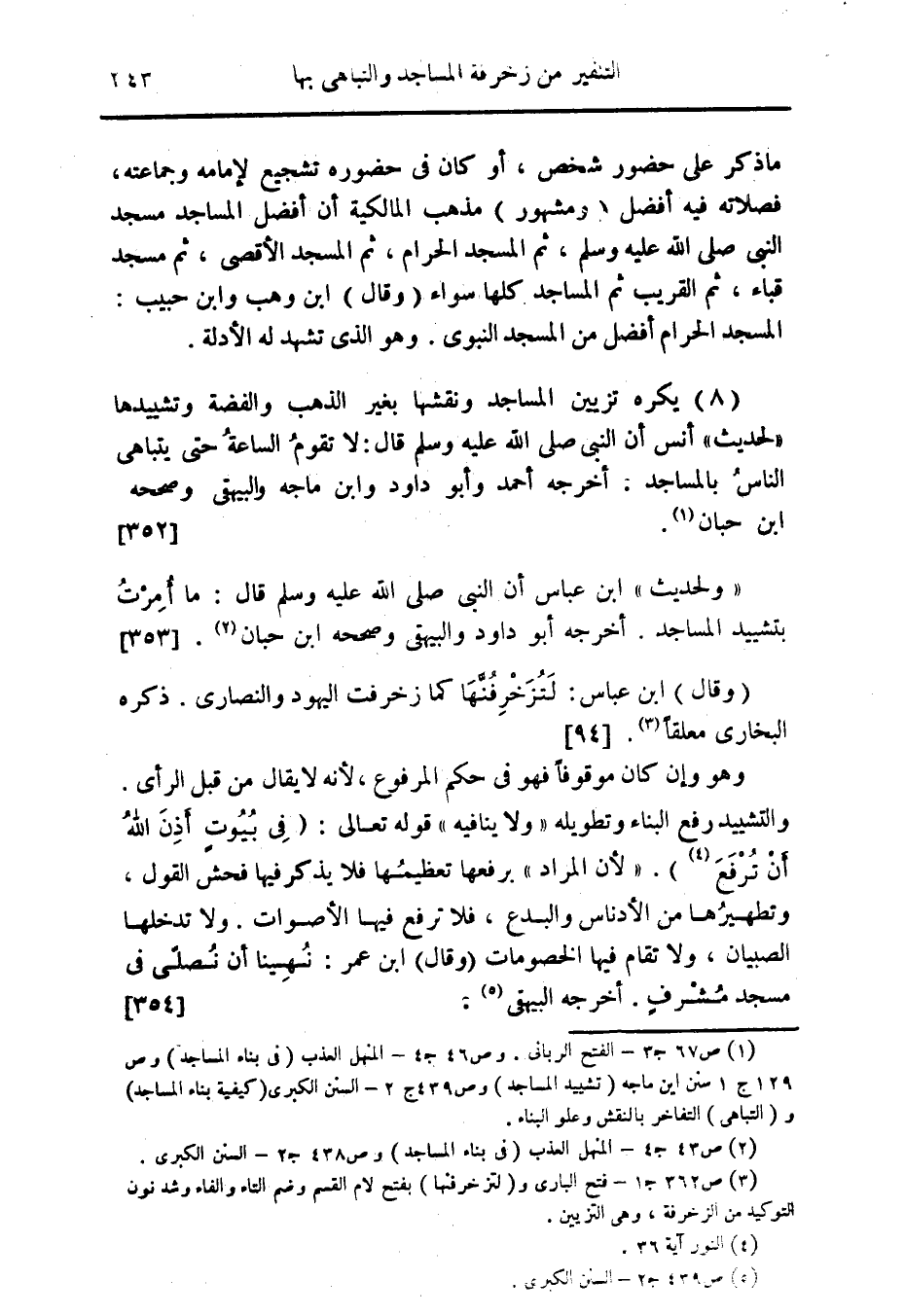 (¬1) ص 67 ج 3 - الفتح الربانى. وص 46 ج 4 - النهل العذب (فى بناء المساجد) وص 129 ج 1 سنن ابن ماجه (تشييد المساجد) وص 439 ج 2 - السنن الكبرى (كيفية بناء المساجد) و (التباهى) التفاخر بالنقش وعلو البناء.