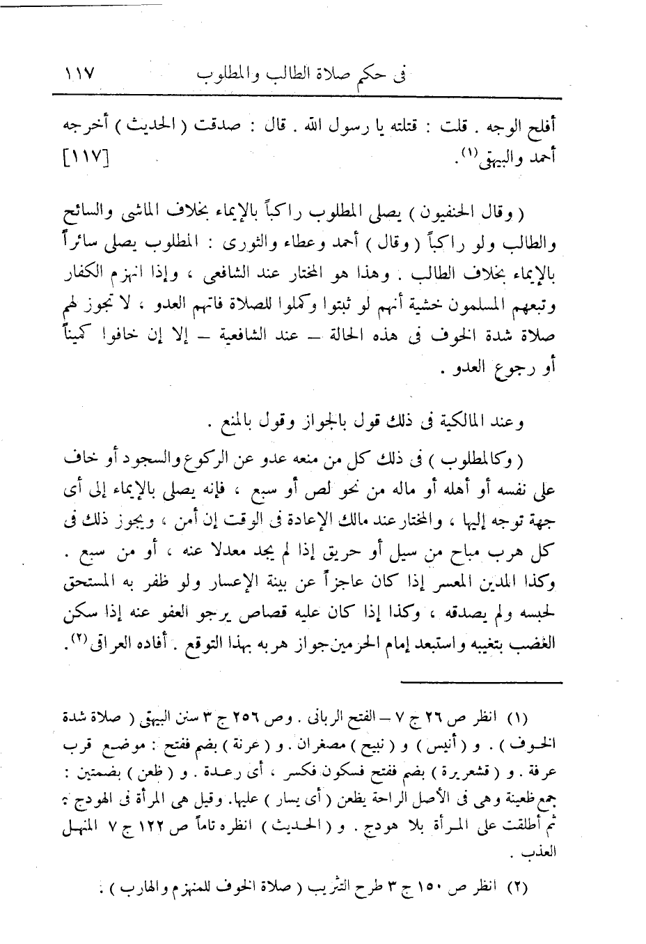 (¬2) انظر ص 150 ج 3 طرح التثريب (صلاة الخوف للمنهزم والهارب).