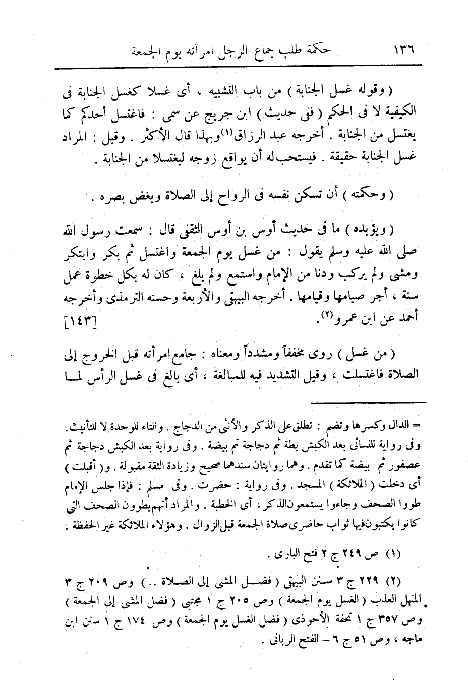 (¬2) 229 ج 3 سنن البيهقى (فضل المشى إلى الصلاة .. ) وص 209 ج 3 المنهل العذب (الغسل يوم الجمعة) وص 205 ج 1 مجتبى (فضل المشى إلى الجمعة) وص 357 ج 1 تحفة الأحوذى (فضل الغسل يوم الجمعة) وص 174 ج 1 سنن ابن ماجه، و 51 ج 6 - الفتح الربانى.