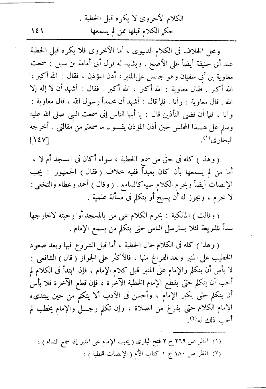(¬2) انظر ص 180 ج 1 كتاب الأم (الإنصات للخطبة).