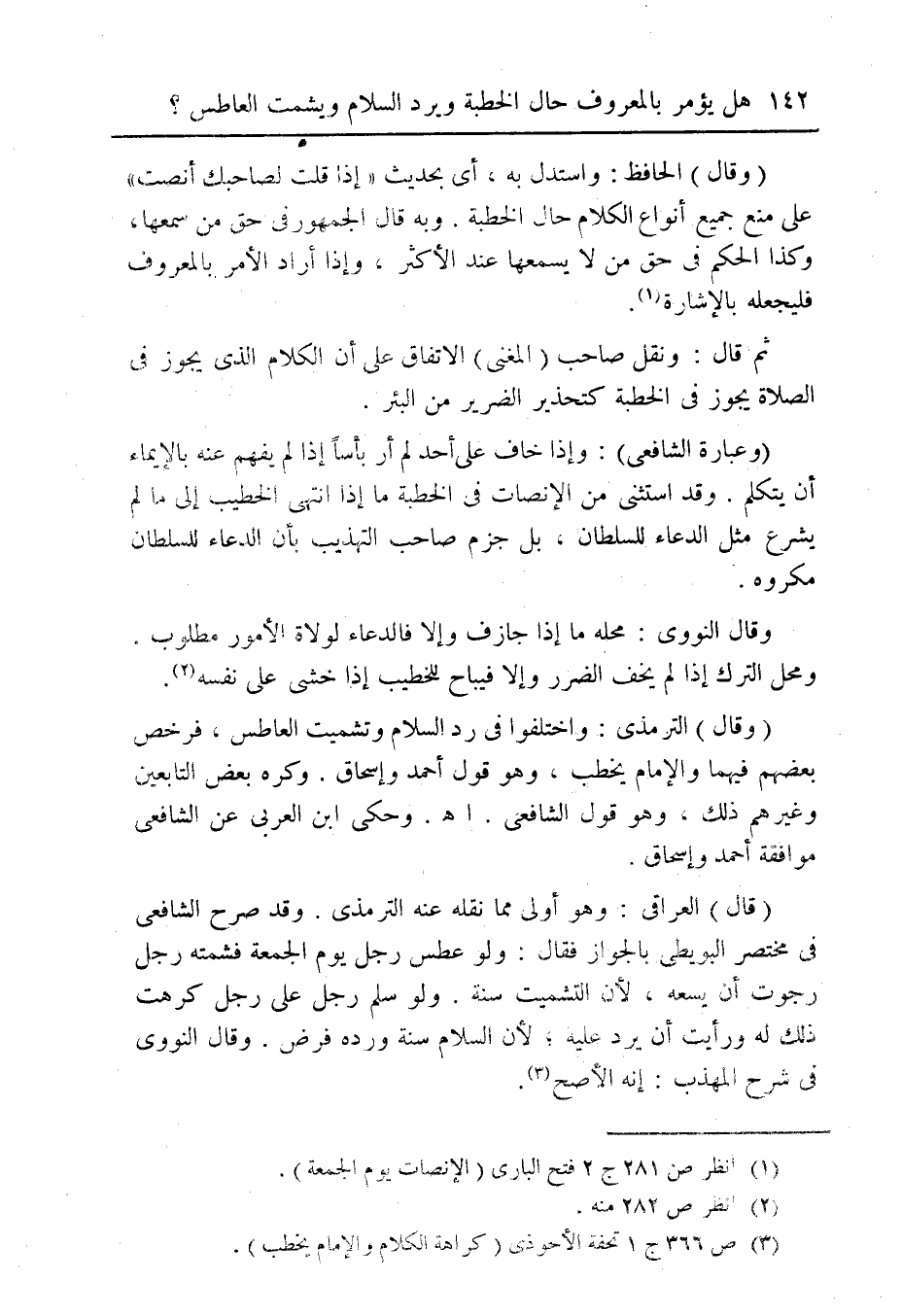 (¬3) ص 366 ج 1 تحفة الأحوذى (كراهة الكلام والإمام يخطب).