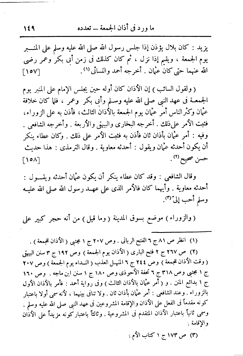 (¬2) ص 267 ج 2 فتح البارى (الأذان يوم الجمعة) وص 192 ج 3 سنن البيهقى ج 1 مجتبى وص 318 ج 6 تحفة الأحوذى وص 180 ج 1 سنن ابن