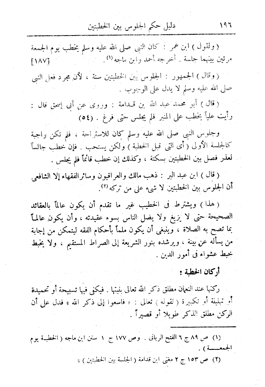 (¬2) ص 153 ج 2 مغنى ابن قدامة (الجلسة بين الخطبتين).