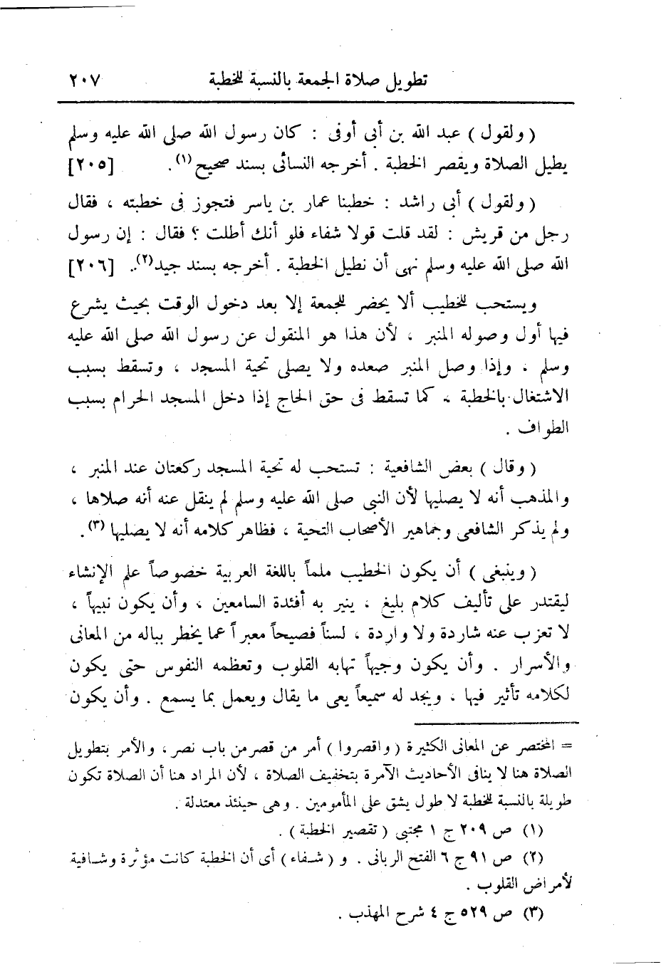 (ولقول) عبد الله بن أبى أوفى: كان رسول الله صلى الله عليه وسلم يطيل الصلاة ويقصر الخطبة. اخرجه النسائى بسند صحيح (¬1). [205].