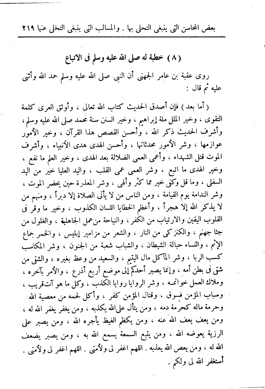 (8) خطبة له صلى الله عليه وسلم فى الاتباع